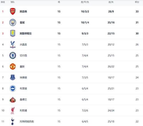 曼联获胜,战绩变成7胜4平4负,总积分达到25分,升到了第6名。这让争四格局更加混乱。曼联和身前的切尔西积分一样,只比欧冠区的水晶宫少1分,与第3名的阿斯顿维拉有5分的差距。